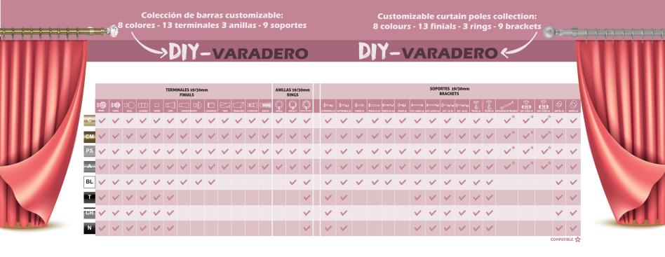 It is easy to get the desired combination or the most suitable curtain set by combining all the components of the Varadero collection. The finials are represented with the most popular shapes of the market trends, such as crystal ball and diamond, metal ball, cup, cylinder, and some other modern shapes to get any decorative need. Round of flat rings and many different types of brackets will help to create a customized ideal product.