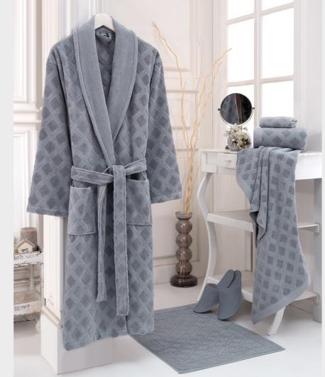 Produced by Carded Yarn, Velour Jacquard Bathrobe.