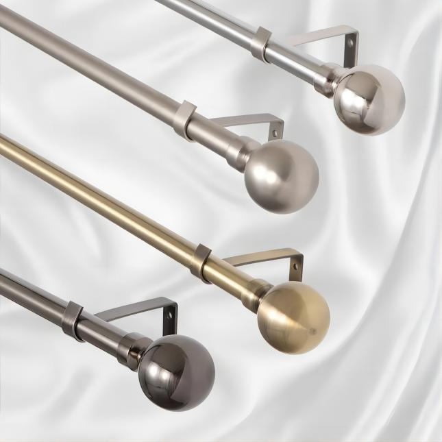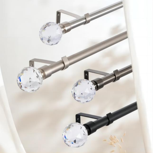 Metal curtain pole set include pole, crystal finials, brackets and rings. Diameter and length can be customized. Multiple paint or plating colors available.