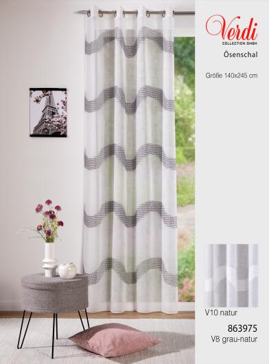 Der Ösenschal aus einem pflegeleichten Polyestermaterial, mit einer eleganten und hochwertigen Wellen Musterung, können Sie die restliche Einrichtung abstimmen und somit eine hervorragende Möglichkeit schaffen, stilvolle Akzente in Ihrem Raum zu setzen.